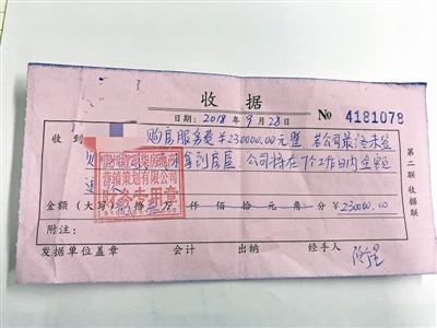 刘娅实地看完光华尚居的楼盘后,就赶紧办理了落户,把户口落在了成都市金牛区。随后,刘娅和徐坤通过双方父母以及跟朋友借钱筹得23万元,先打给了对方11万,待看到对方出示的“准购证”后,又支付了余下的12万。与刘娅同时付完23万中介费的还有她的师弟王元宁。由于王元宁没资格,就写了在另一高校读博士的女友的名字。