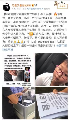 10日下午,浙江杭州淳安县公安局微信公众号发布协查通报称,2019年7月8日10时许,淳安县公安局青溪派出所接到群众报案,称孩子从家中被两名租客带走,下落不明。接报后,淳安公安调集派出所、刑侦、网警、情报等部门精干警力联合开展立案侦查,专案组连夜赶往宁波开展调查。