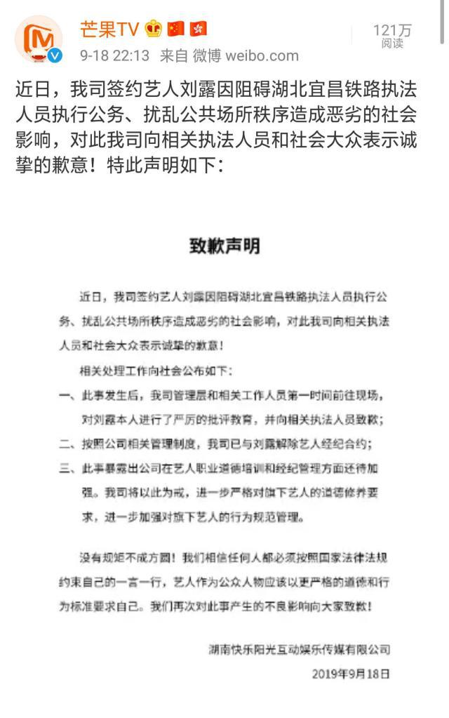 然而,有这样的反面典型在前,刘露却仍有恃无恐,按方抓药。虽然事件过后,刘露也在网上发出了道歉信,但并没有换来网友的原谅,芒果TV也在她道歉之后发声明与其解约。