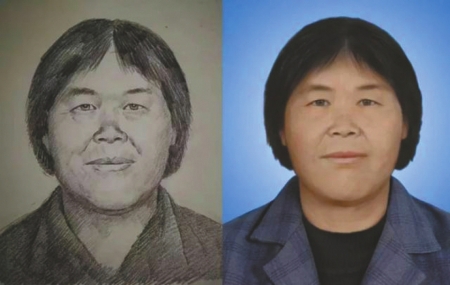 ▶警方根据供述,画出的嫌疑人“梅姨”画像。