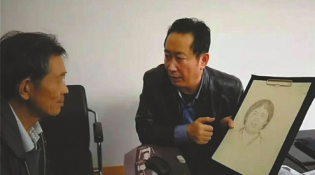 林宇辉根据老汉描述画出“梅姨”画像。受访者供图