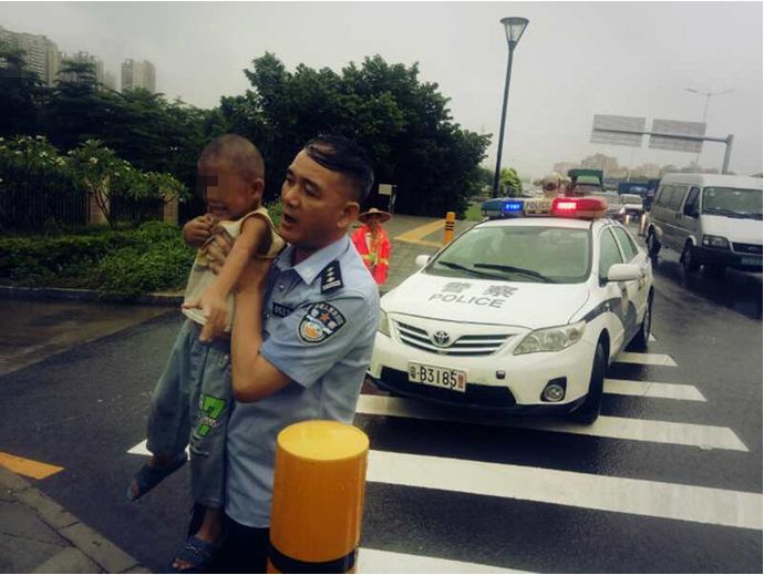 近日,新湖所巡逻民警在辖区开展日常巡逻工作,警车行至龙大高速公常路桥底时,民警发现一名小男孩蜷缩在公路边。据小男孩描述,自己是一个人出门玩耍,由于突然下起了暴雨,一时慌张便迷路了,只好躲在桥下。