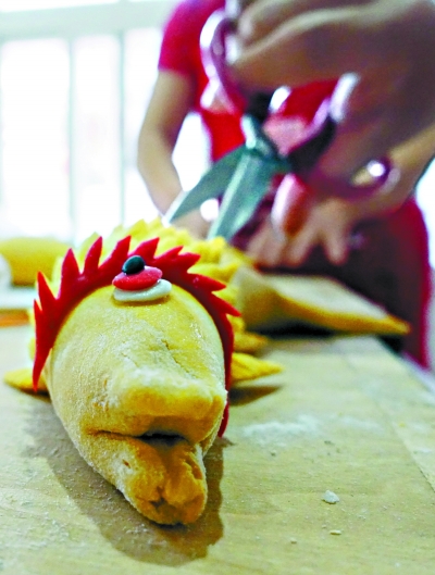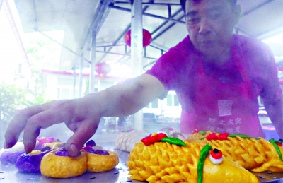 ▶花馍上色用的全是健康原料,南瓜、紫薯蒸出来的花馍好看又好吃。