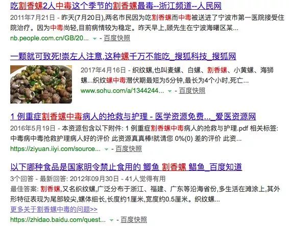 赵小姐上网搜一下,一对照,发现自己很有可能是“割香螺中毒”。当她看到明晃晃的“割香螺中毒最严重可致死”这样一行字后,再也坐不住了,赶紧往医院跑。
