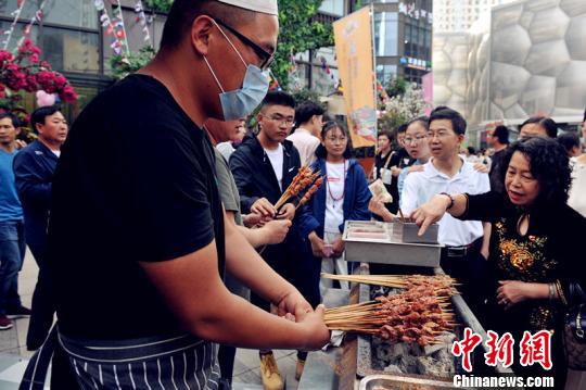 图为美食节体验区民众购买烤羊肉。 央姬卓玛 摄