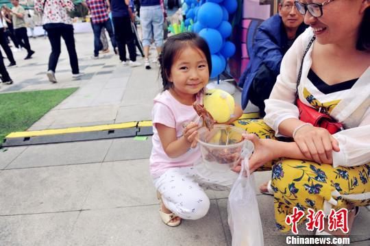 图为美食节小女孩街边享受美食。 央姬卓玛 摄
