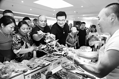 产自国家级食品安全示范县扎赉特旗的生态黑木耳、来自内蒙古林西县的优质白糖、源于河北涞源的特色小米鸡蛋……在新发地农产品批发市场湖北厅举办的2018年丰台区扶贫协作地区农副产品推介活动现场,来自内蒙古兴安盟扎赉特旗、赤峰市林西县以及河北省保定市涞源县的特色农产品唱起了主角,各种特色农产品齐聚一堂,不少来自贫困地区的企业还把“餐桌”搬到了现场,烤羊肉、白水煮猪肉、羊肉串,来自丰台区的商超企业、餐饮企业以及新发地的众多经销商与来自三地的供应商热烈地洽谈着合作意向,还不时地品尝来自乡土地的肉味儿。