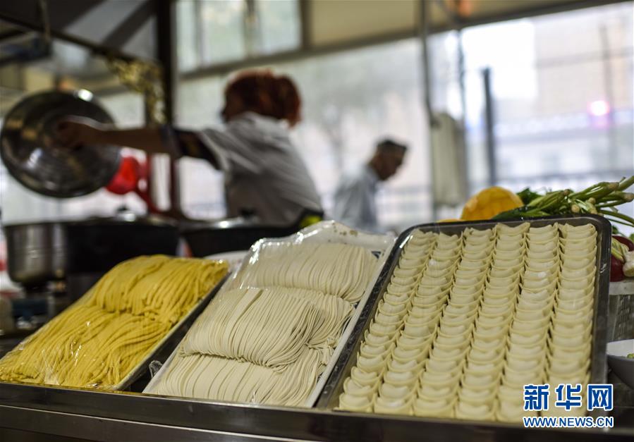 在新疆和田市的夜市里,各色面食令人垂涎(2017年5月12日摄)。 新华社记者赵戈摄
