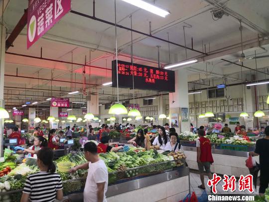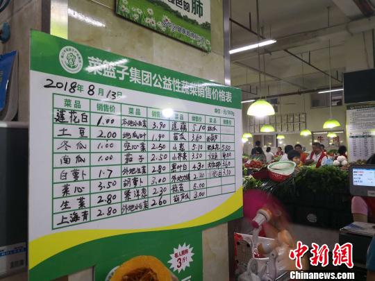 图为海口菜篮子集团在农贸市场公益性摊位的蔬菜投放价格 王子谦 摄