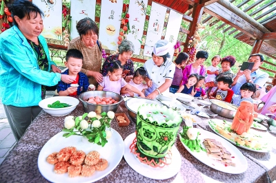 本报讯(记者 李瑶)板条面、韭菜炒蜗牛、桑叶饼、碗坨儿、花生白薯饼、燕窝冬瓜羹……根据村里老人口述,厨师还原出了一道道北京农村老吃食,统称“老嚼谷儿”。昨天,这些“老嚼谷儿”在丰台区卢沟桥乡郭庄子村亮相,9月22日至9月24日为期三天的“中国农民丰收节”郭庄子农时荟丰收节专场上,市民可充分享受这些传统美食。