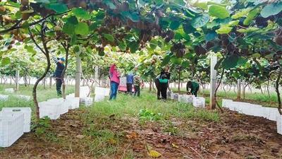 郭铁栓和家人正在摘猕猴桃