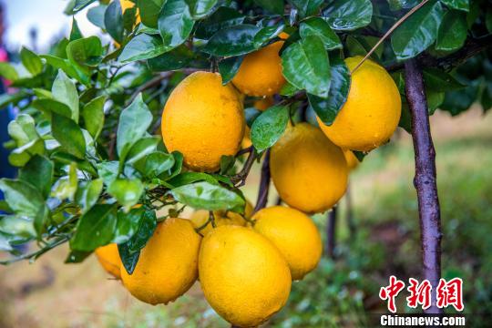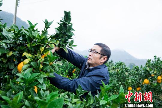 11月16日,江西赣州安远县一脐橙基地,脐橙飘香,金黄个大的脐橙挂满山头静待采摘。 孙磊 摄