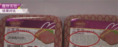 另外,在塑料或塑料薄膜载体上的生产日期很容易被擦除,在纸、金属载体上的相对牢固。扬子晚报记者看到:对于喷码印刷的生产日期,体验人员拿酒精棉片轻轻一擦,就擦得干干净净;而另一方面,在网上销售的简易喷码机只要几十元就可以买到。体验人员还发现,有些生产日期是标注在瓶盖上或外面的塑料薄膜上,轻轻一拧或手撕后,就很容易更换——某电商平台出售的塑料瓶盖、塑料封膜,每个不足0.1元。