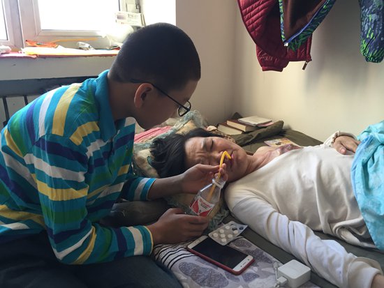 小宇照顾妈妈。史东旭/摄