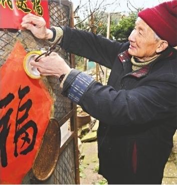 长江日报讯(记者王恺凝 武叶)2月4日中午,武汉市黄陂区木兰山下一处朴素的小院里,85岁的马旭奶奶因感冒卧床休息,老伴颜学庸和解放军小战士一起给门窗贴上春联、窗花,以简单的仪式迎接新年的到来。