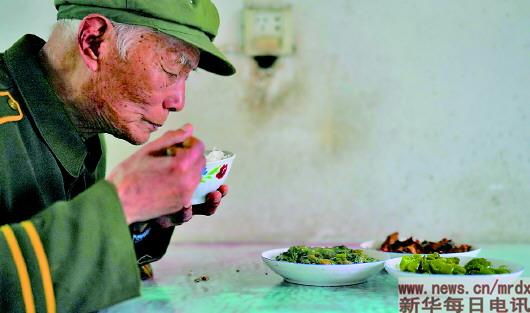 3月27日,程樟柱在屋内吃饭。