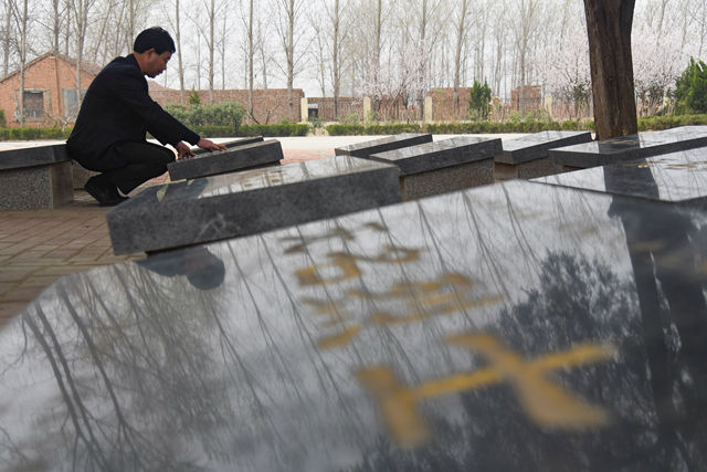 张景宪在张和庄烈士陵园内(3月20日摄)。