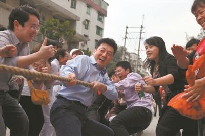 2015年,医院职工拔河比赛时的王磊(中)。