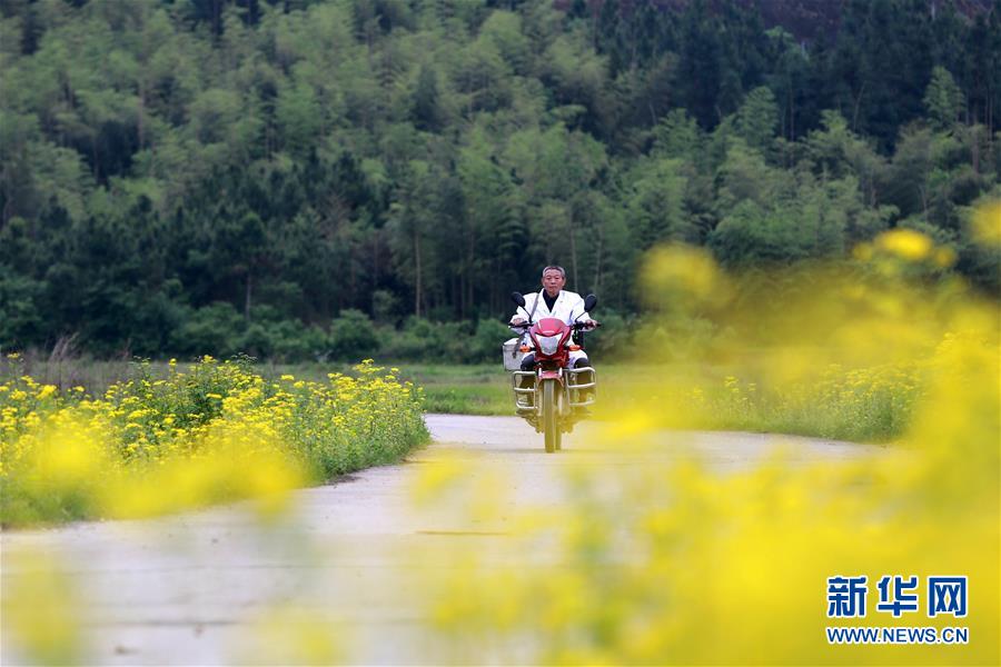 4月30日,江西省峡江县罗田镇江口村乡村医生袁华在出诊途中。 新华社发(陈福平 摄)