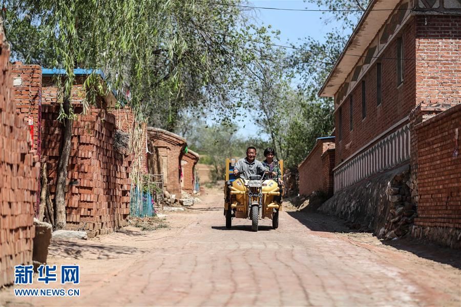 5月23日,韩彩莲(右)与爱人丰兴富乘坐农用车回家。新华社记者 潘昱龙 摄