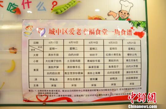 图为西宁市城中区爱老幸福食堂的食谱。 鲁丹阳 摄