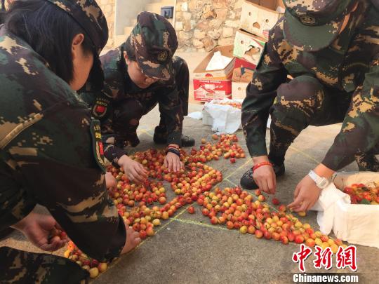 图为队员们用樱桃拼国旗。 常宏基 摄