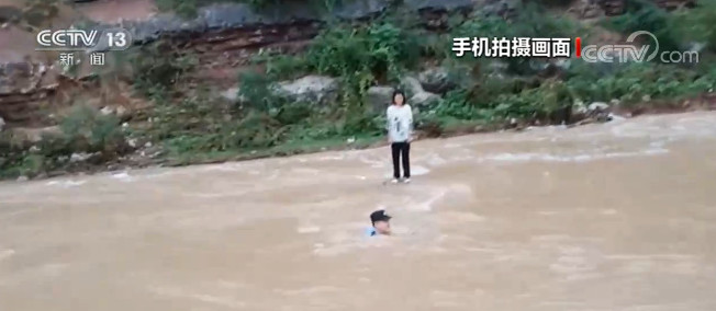 央视网消息:20日,湖北省丹江口市蒿坪派出所接到报警,由于强降雨导致附近黑沟河河水突然上涨,一名小女孩被上涨的河水困在河道中间。