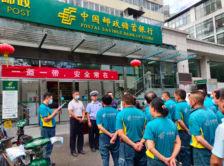 8月24日,西城区邮政分公司举行“授盔”仪式,为邮递小哥代表送上安全头盔,向他们传递安全行驶知识。