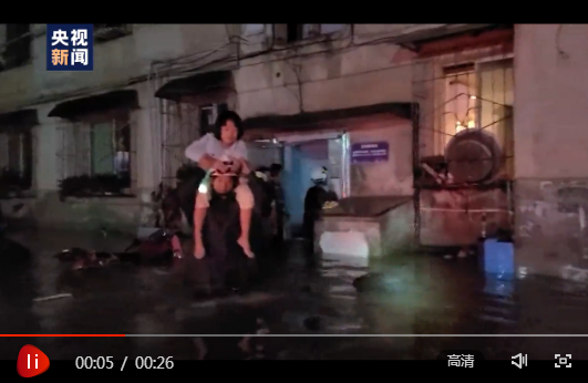 消防救援人员赶到现场发现,小区的一楼已经完全被水淹没,由于降雨还在持续,水位在不断上涨,其中一户居住在一楼的居民家中有两个孩子,分别是7岁和15岁。家长请求消防员将两名孩子转移到安全地带,在救援过程中,消防员袁玉斌让7岁大的小女孩坐在自己肩上,蹚水前行。小女孩坐在袁玉斌肩上冷得瑟瑟发抖,袁玉斌不停叮嘱她:“不要怕,抱着我的头。”离开时,袁玉斌还让其他消防员给小女孩拿上几件衣服,担心她受凉感冒。通过近10分钟救援,消防员成功将两个孩子转移到安全地带,并交给孩子的外公照看。(总台央视记者 王皓宇)