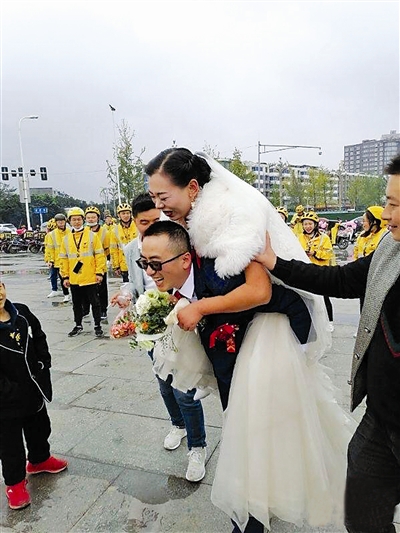 10月18日,是成都小伙练虎和女友曾腊梅结婚的大喜日子,没有豪华的迎亲车队,也没有摄像跟拍,却自发来了一大波外卖骑手捧场。两人因外卖结缘,同为骑手的他们希望办一场既朴素又难忘的婚礼,与大家共同分享结婚的喜悦。得知后,同事们纷纷自发参与进来,决定组成骑手车队去迎亲。