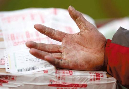 因为常年干活,王延坡手上布满了老茧,洗脸的时候经常划伤脸。