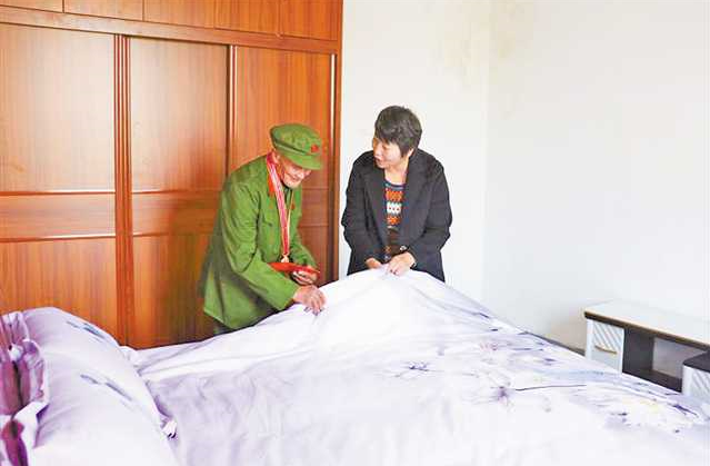 10月23日上午,随着大门上的红绸被揭开,沙坪坝区回龙坝镇四龙村91岁抗美援朝出国作战志愿军老战士景纯熙正式搬进了新家。
