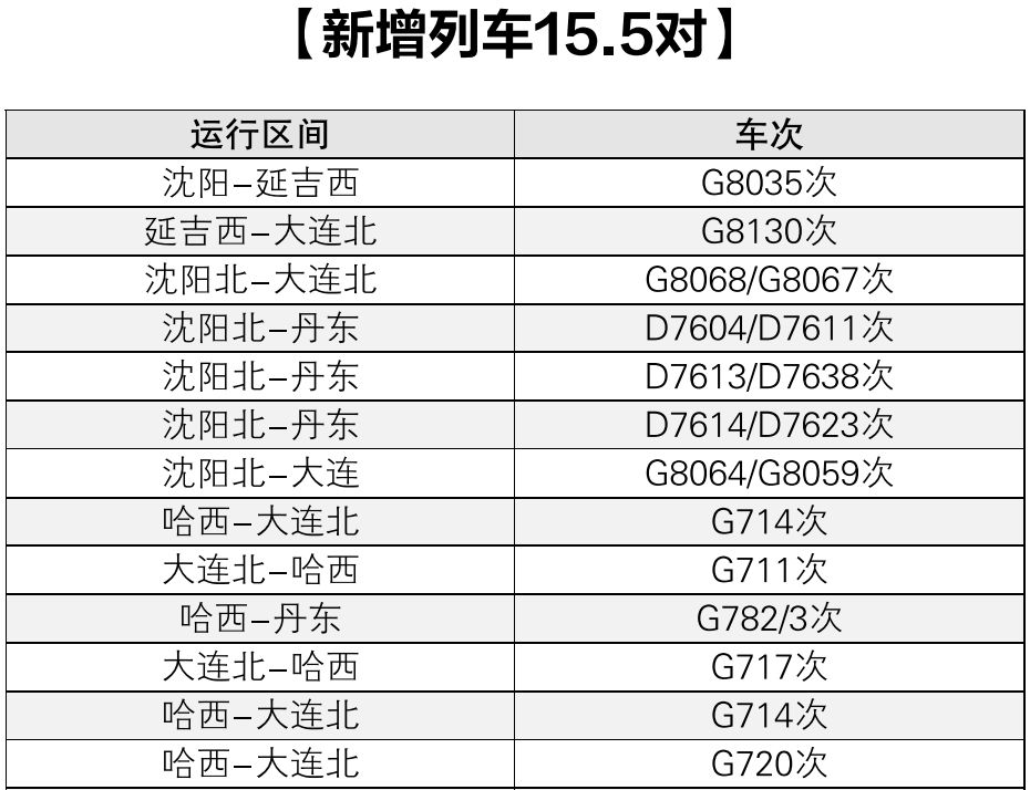 4月10日零时起,沈阳北站将实行新运行图。调图后,沈阳北站新增旅客列车15.5对,停运旅客列车8对,取消沈阳北站办理客运业务的4对,变更运行时刻的旅客列车52列。