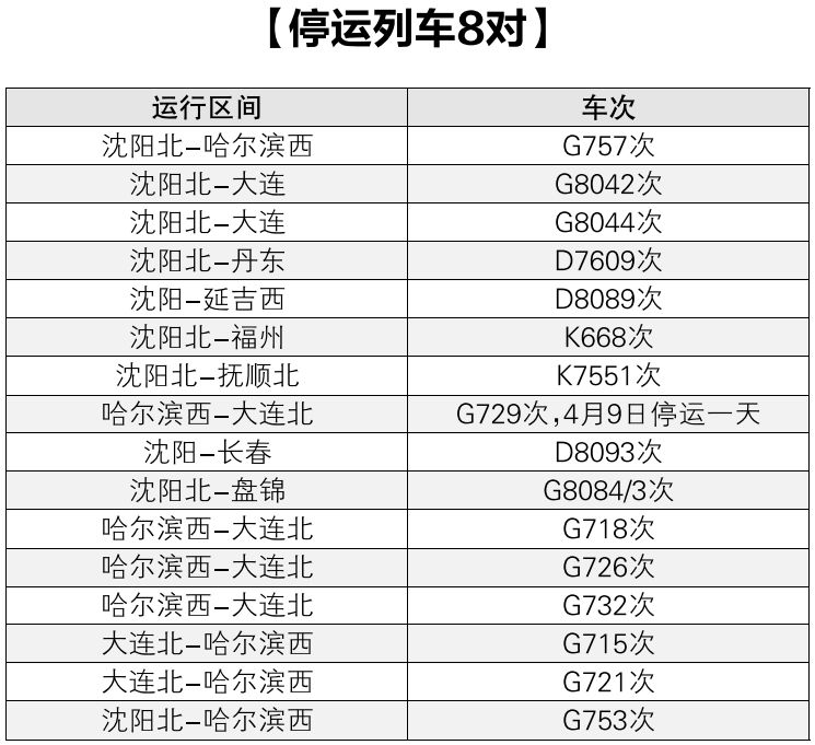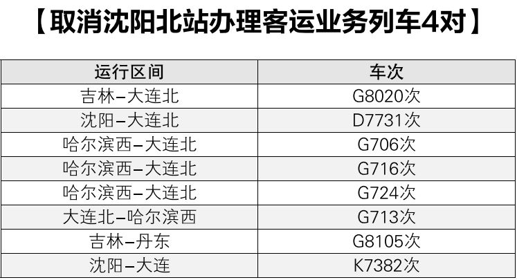 调图后沈阳北站8对列车停运