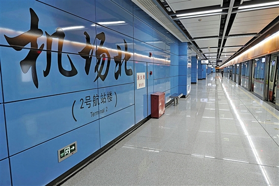“机场北”站B口通往T2航站楼