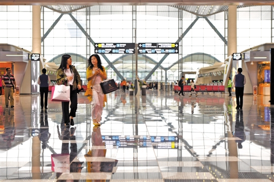 今早,白云机场T2航站楼平稳有序 羊城晚报记者 林桂炎 周巍 摄