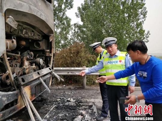 大巴车行驶中自燃 处置得当40名乘客脱险
