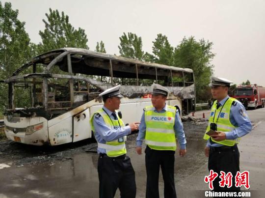 交警现场调查火灾情况。 山西高速交警提供 摄