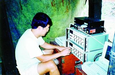 十几年前,年轻的高亮在铁路工程现场做实验。当年的一头黑发,如今已经花白。(照片由受访者提供)