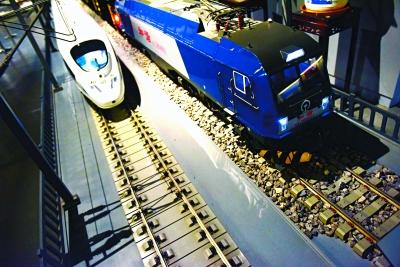 ▲中国铁道博物馆内的一件模型展品,清晰地显示出老式的有砟轨道(右)与高铁线路上的新型无砟轨道(左)的不同。
