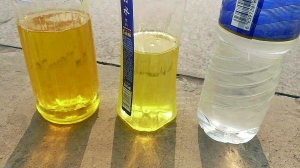 下图为网店卖家展示将动力水和汽油勾兑出的成品。