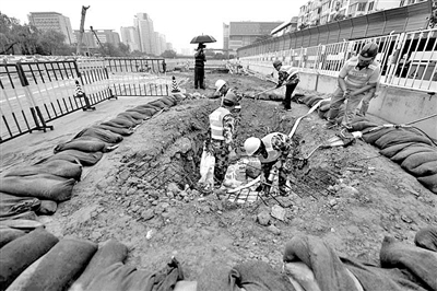 北京市政路桥市政集团二处副经理张永恒介绍,木樨地站施工作业现场处于地表以下33米,由于车站东侧紧邻永定河引水渠,主体基坑距离河堤最近只有6米,一旦雨势较大,很容易造成基坑内雨水排放受阻。为此,车站制定了相应的防汛应急预案,例如基坑排水不畅时,将采取大容量泵抽排,最大限度减少突发事故造成的影响。