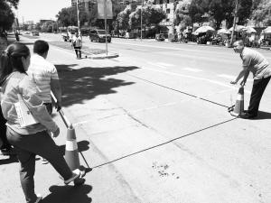 之后记者又拨打了12319城管热线,工作人员表示将派人了解情况。30日11时许,桥西区城管局市政维护科的工作人员赶到现场,他们查看后表示,这段新华西路属于桥西区城管局管理。为防止再有市民在这里受伤,他们随后在大坑附近用帽墩进行了围挡,并表示会在下午对路面进行应急填平修复。一位工作人员介绍说,经了解,这段路面下有电力隧道,之前电力部门曾在此进行过破路施工,施工后他们进行了路面恢复,从路面上还可以看出重新修补的痕迹,而塌陷破损的路面就在重新修补的路面上。