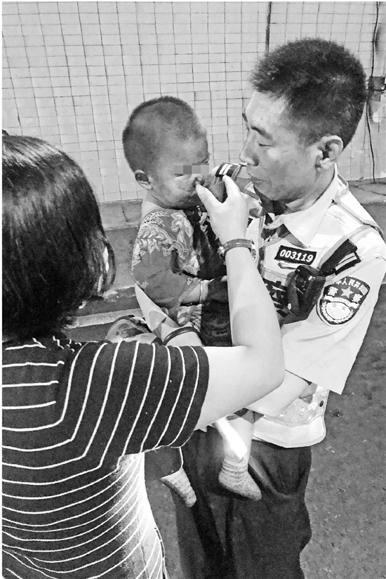 高速交警臧晓东(右)抱着被救出来的小女孩。