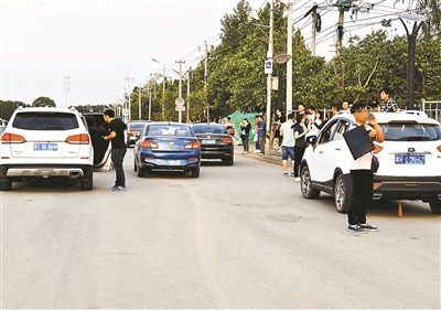 当日18点45分,陆续有车主将车开走。地铁站附近的两侧道路也停满了等人的外地车,尽管有协管员不时疏堵,车辆仍然并排停了两排,导致道路拥堵。尽管处在正在建设中的城市副中心核心区,但仅从车牌上很难看出北京的迹象。