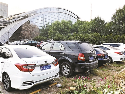 地铁潞城站外停有大量外埠车摄影/本报记者 黄亮