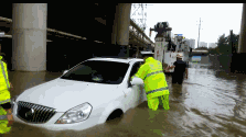 成都:积水严重 汽车抛锚在水中