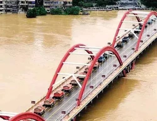 2009年7月5日,广西柳州遭遇特大洪水,柳江洪峰经过柳州时,水位达到89.64米,超过警戒水位7.14米。为确保该市文惠桥安全,30辆满载石头的重型卡车开上桥压重。这些卡车装满石头后,每辆重达26吨。