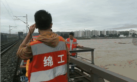 张明表示,为了保证抢险人员万无一失,重载列车驶上大桥后,车上人员迅速撤离。而其他专业技术人员则留守在大桥上,定时对桥梁进行监测、检查、瞭望,密切关注洪水和大桥动静。