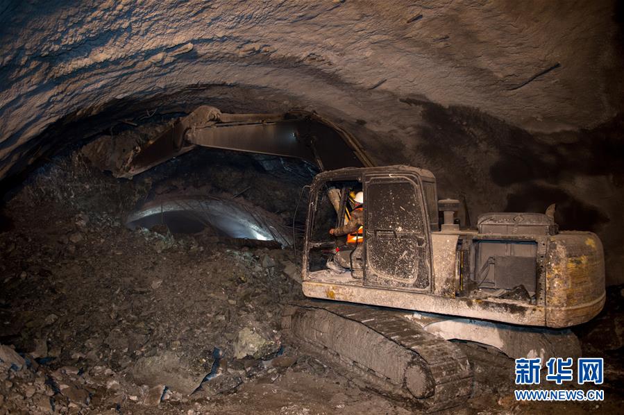 7月30日,施工人员在拉林高等级公路米拉山隧道用挖掘机清理洞渣。新华社发(旦增尼玛曲珠 摄)